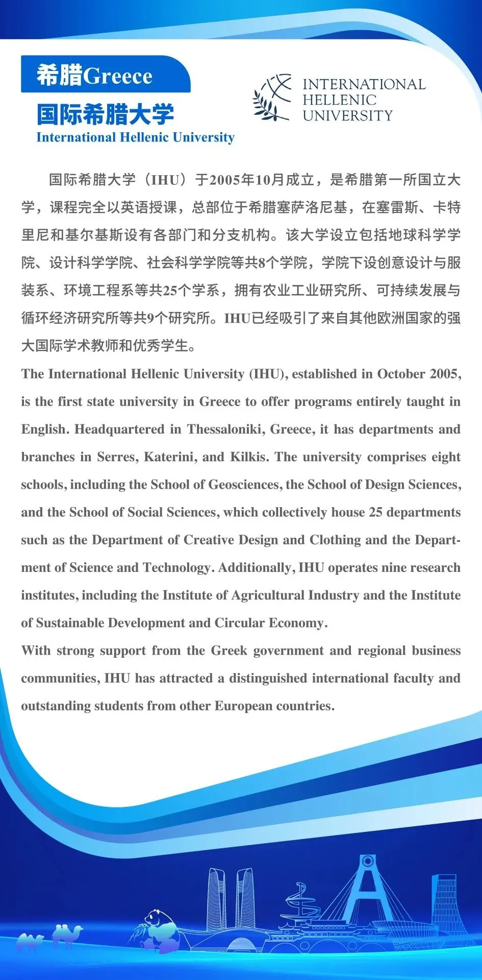 高校科研,创新之源! 本期聚焦三所国际知名高校合作需求 伊朗大不里士大学 (全球水资源第16,农学、工程前200) 寻求国际科研合作 土耳其梅尔辛大学 (技术开发区Technoscope促进产学结合) 期待技术交流 希腊国际希腊大学 (IHU,全英授课,可持续发展研究所) 致力于推动国际合作 连接全球学术力量 共促技术转移与人才培养